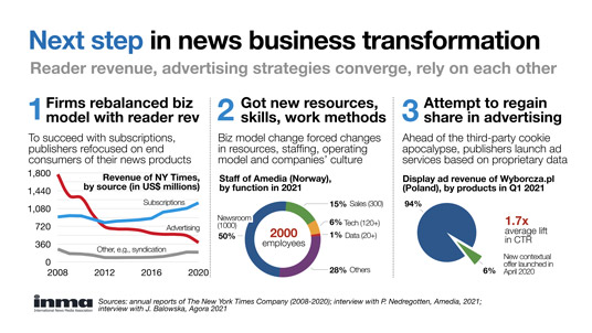 European publisher findings to be shared in this global Town Hall come from The Courier (DC Thomson Media), United Kingdom; Denik (Vltava Labe Media), Czech Republic; Irish Independent (Independent News & Media), Ireland; Le Journal du Dimanche (Lagardère Media News), France; OÖNachrichten (Wimmer Medien), Austria; El País (Prisa), Spain; Público (Público Comunicação Social), Portugal; and Ruhr Nachrichten (Lensing Media), Germany.