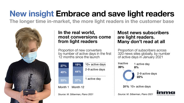While fans and heavy readers help kick start the subscription programme, they cannot sustain the growth. The longer time in-market, the more you convert light readers, and the more subscribers are at risk of churning.